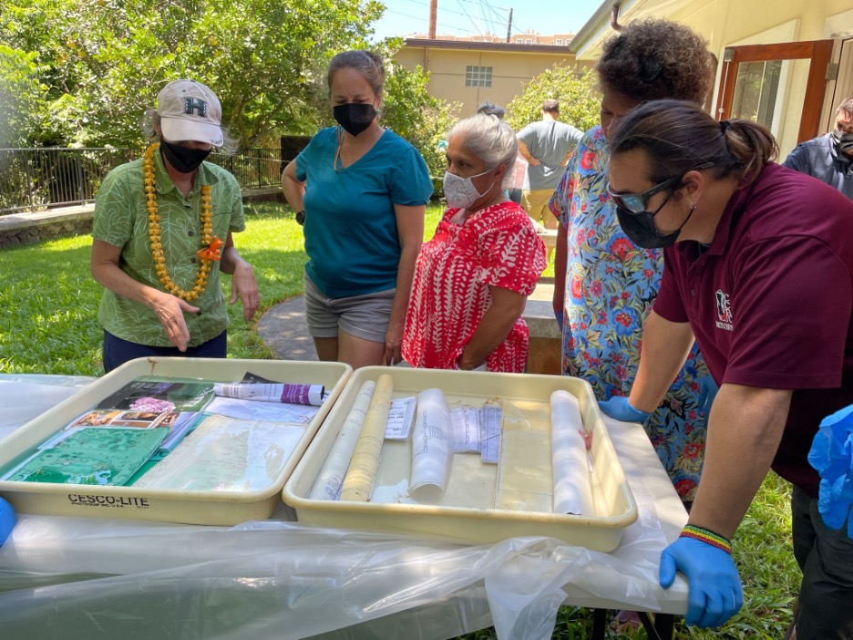 Malia discusses handling wet archival materials during the salvage exercise. Courtesy Karen Kosasa.