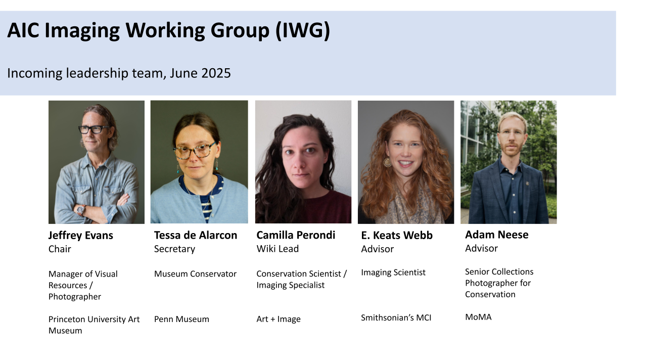 As my term as Chair of the AIC Imaging Working Group comes to a close, I want to take a moment to thank you all for your ongoing support, collaboration, and curiosity. It's been a privilege to serve, and I've learned so much from the conversations, programs, and projects we've shared over the past few years.