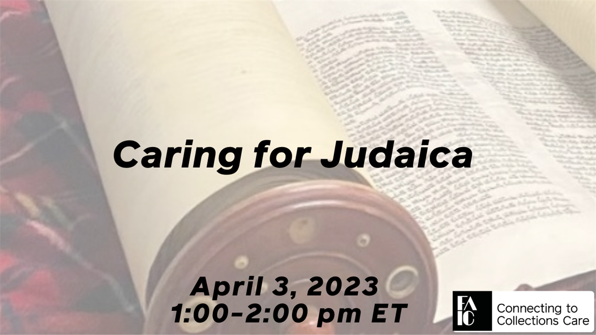 The recording and resources from the April 3, 2023 Caring for Judaica webinar is now available on our website. To access these materials please click on the link below: