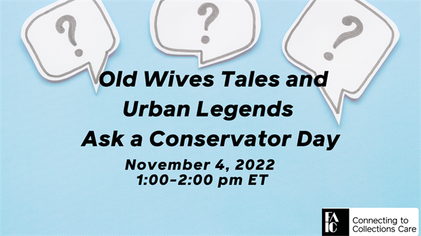 C2C Care Old Wives Tales and Urban Legends Ask a Conservator Day Webinar November 4, 2022 1pm ET