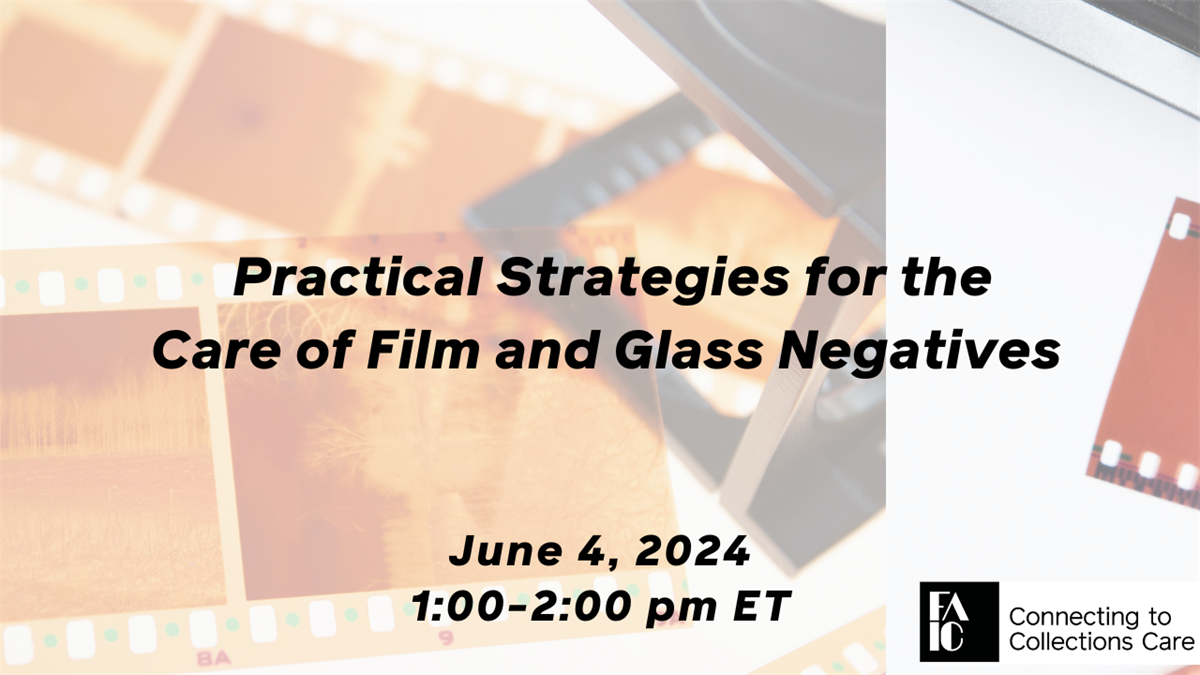 • 1.  Now Available! C2C Care June 2024 Webinar Practical Strategies for the Care of Film and Glass Negatives - Recording and Resources