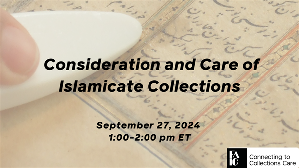 • 1.  Now Available! C2C Care September 2024 Consideration and Care of Islamicate Collections - Recording and Presentation
