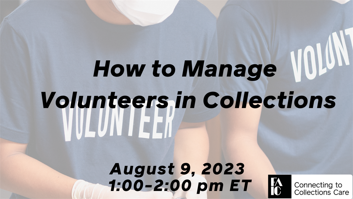 You can now access the recording, presentation and resources from our most recent C2C Care Webinar: How to Manage Volunteers in Collections! Access all of the recourses at the link below: