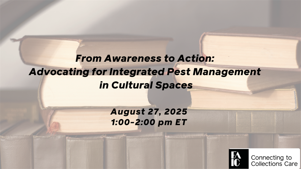 The recording, resources and presentations from our August 2025 C2C Care webinar From Awareness to Action: Advocating for Integrated Pest Management in Cultural Spaces is now available on our website.
