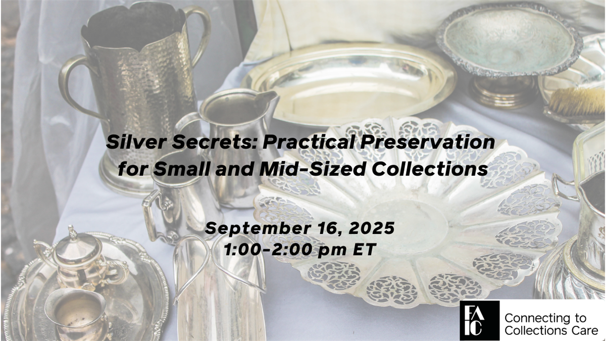 The resources, presentation and recording are now available for the September 2025 webinar Silver Secrets: Practical Preservation for Small and Mid-Sized Collections