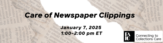 Newspapers show up in almost every collection in some form or another: folded, bound, clipped, scrapbooked, or even used in artworks! At the same time, they are incredibly fragile, prone to disintegrating over time. How do we even begin approaching their preservation? This webinar will give you a place to start, explaining the reasons why newsprint deteriorates so rapidly and covering a range of different approaches to newspaper preservation as well as tools to help you care for your collection.