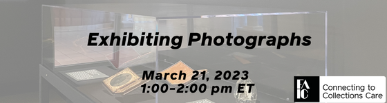 In this webinar, we will go over the process of planning and executing the preparation of photographic objects for exhibitions with a focus on collections care issues. We will delve into some of the concerns related to the preservation of photographs on display, and the presenter will share helpful, accessible, and affordable solutions learned through some of the more challenging exhibition projects from the vast and wide-ranging photography collection at the George Eastman Museum. Topics to be covered include: