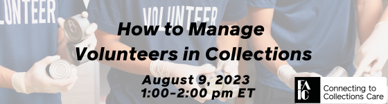 Volunteers are an integral part of a small and mid-sized cultural institutions workforce and can be found across departments. In this webinar we will provide an overview of collections volunteers – how to create a volunteer program or align an existing program with best practices. The presentation will highlight: