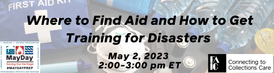 As part of the annual #MayDayPrep program sponsored by FAIC, this C2C Care Webinar spotlights where small and mid-sized organizations can access resources immediately after they experience a disaster, what entities with trained volunteers can offer assistance to these organizations, and finally, training that collections professionals can attend to prepare their institutions and communities for disasters in the future.