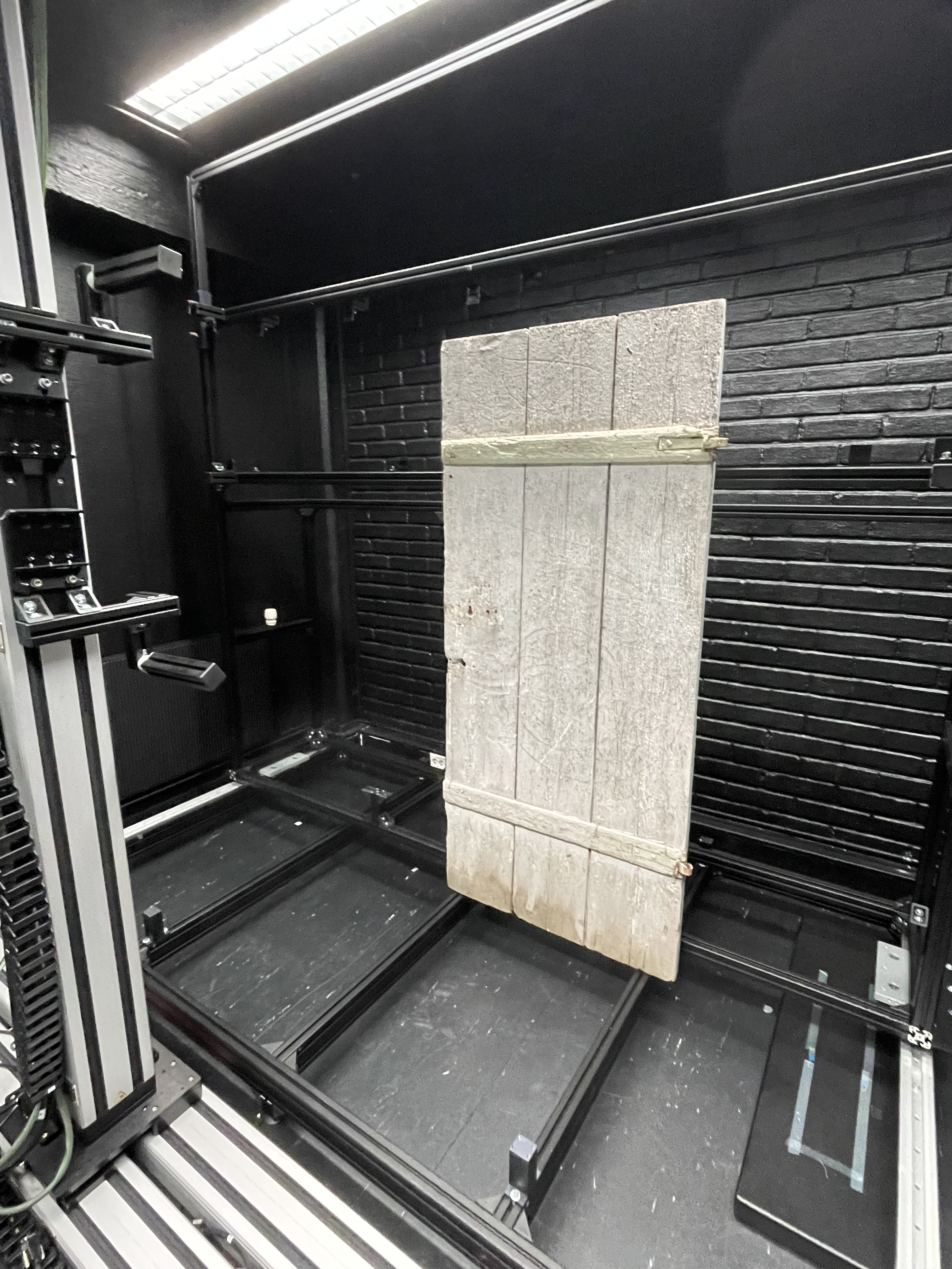 I am currently setting up a studio to image stained glass windows for the first time. I have attached a picture of the current rig in the studio which has adjustable parts. The windows are about a quarter or less the size of the door. I am looking for advice on mounting the windows, especially if there is a support fitting this type of rig. If you also have any other advice about transmissive imaging, I would love to hear it! I appreciate any input that is given!