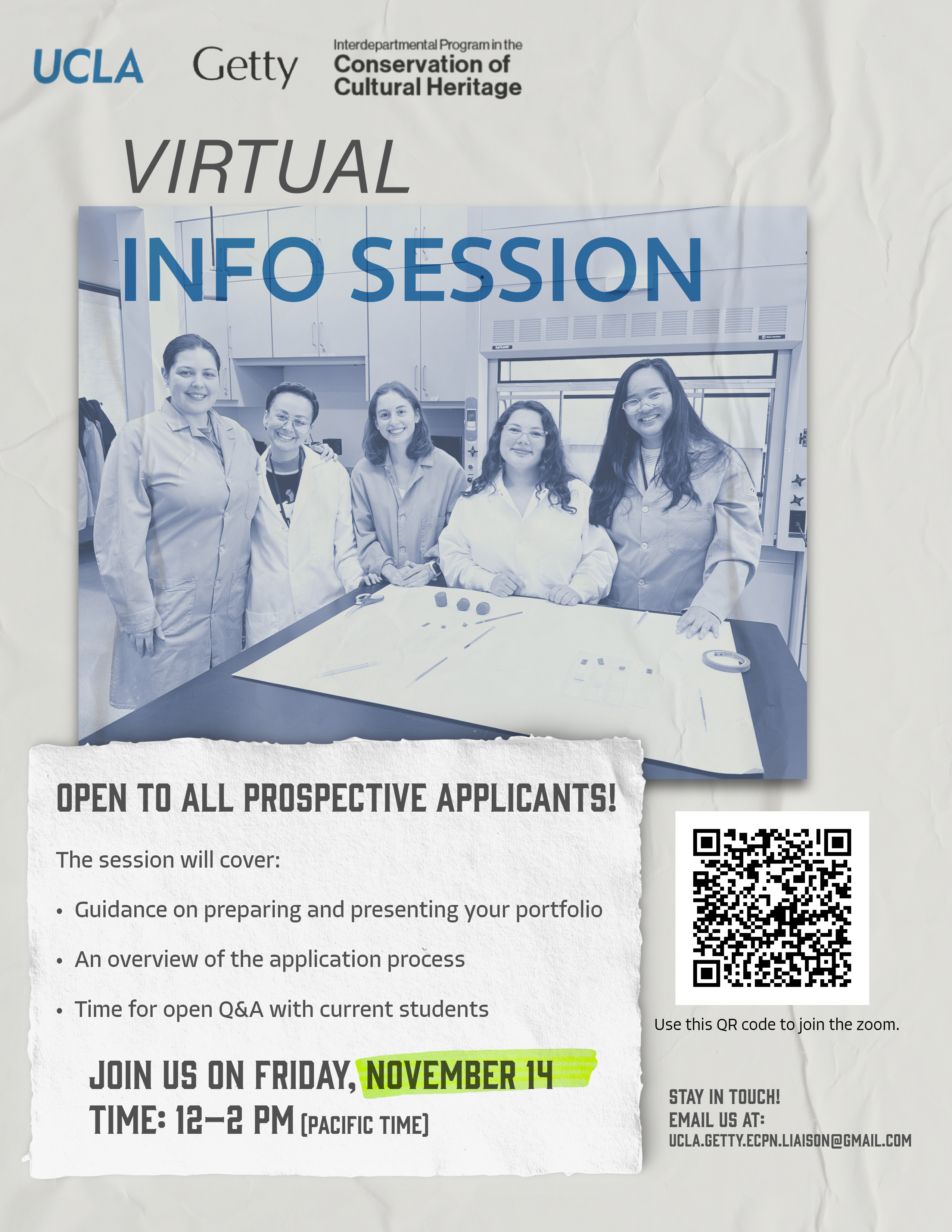 UCLA/Getty Conservation student-led information session for applicants November 14, 12:00 – 2:00 PT