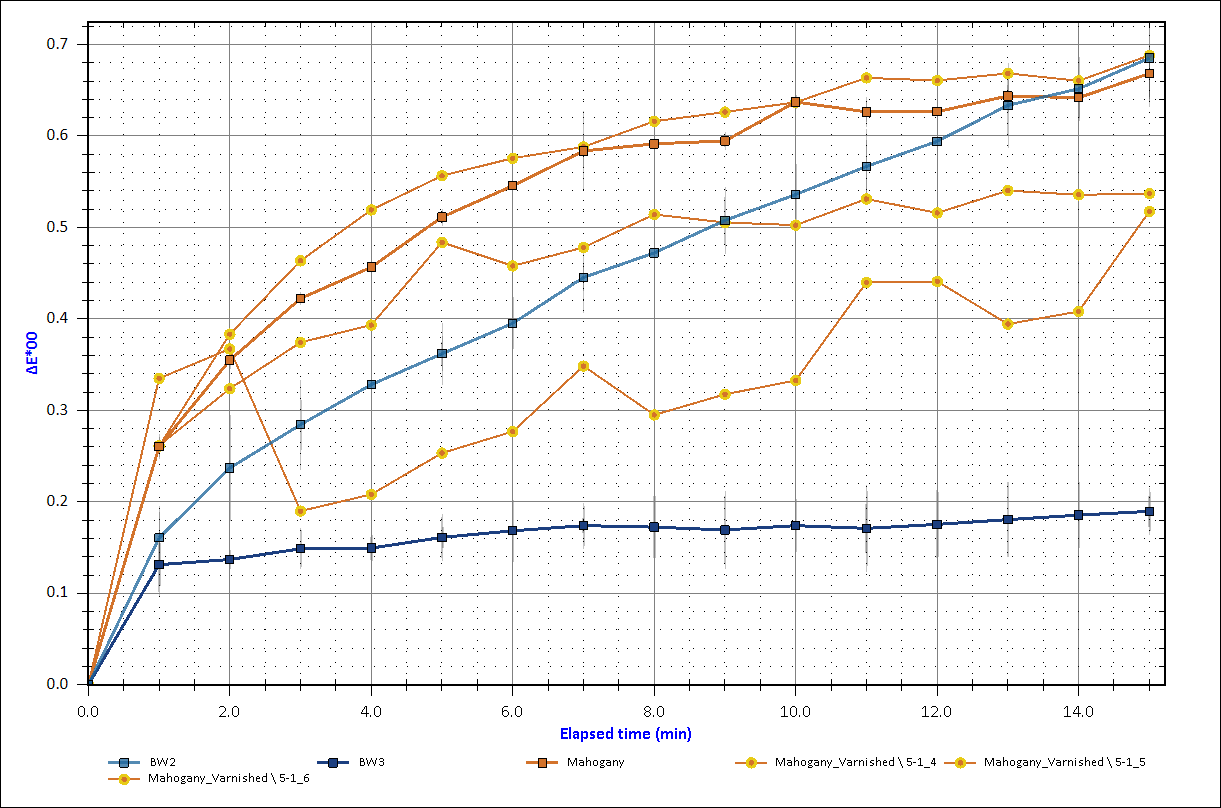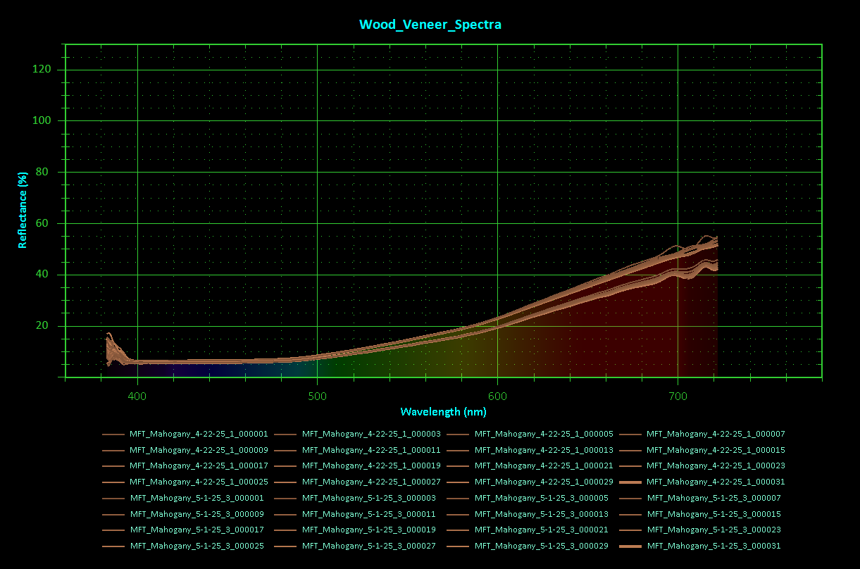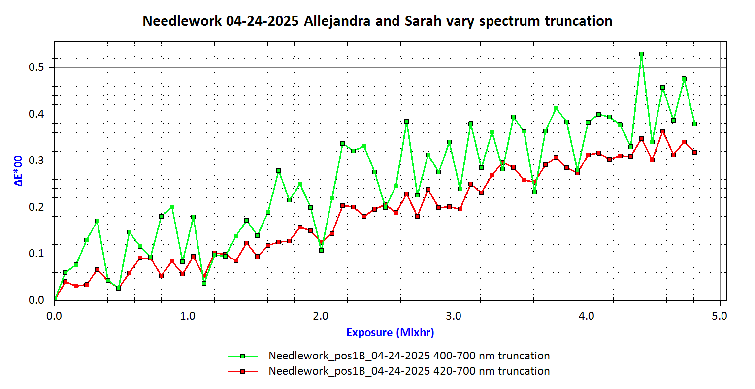 The SPD truncation you all suggested appears to make the greatest difference with the lowest %R varnished sample run (5-1_6), though not as much as what Mike’s DE*00 graph showed. Perhaps that is simply a result of fewer sampling intervals over a shorter runtime on my end.